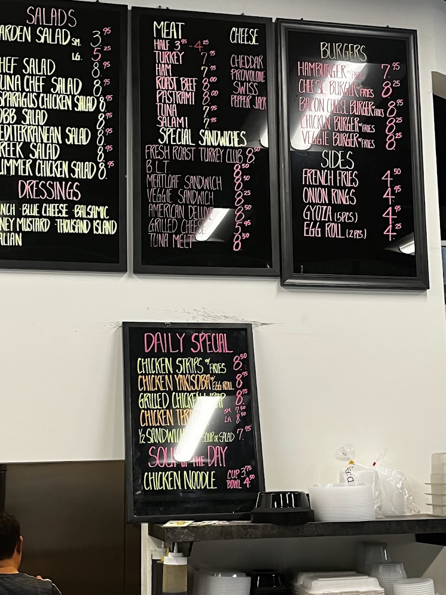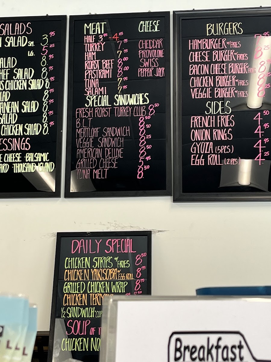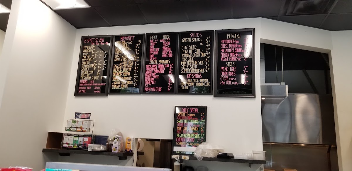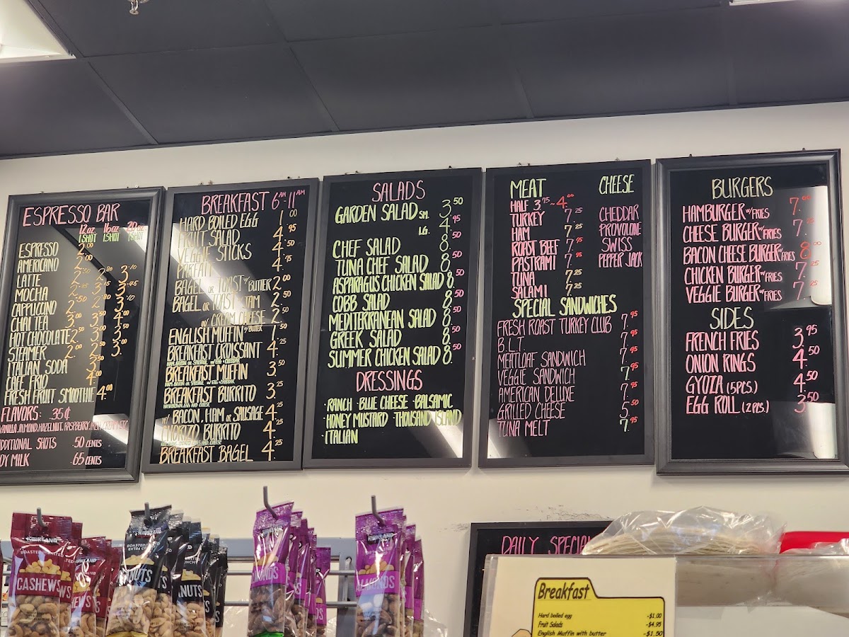 The menu at Café 700 offers a variety of delicious options catering to different tastes. For salad lovers, there are choices like the Arden Salad, Hef Salad, and the Una Chef Salad, along with the Asparagus Chicken Salad and Mediterranean Salad. Meat lovers can enjoy a range of options such as Turkey, Ham, Roast Beef Pastrami, and Tuna. For something a little different, the restaurant features special sandwiches like the Fresh Roast Turkey Club, BLT, Meatloaf Sandwich, Veggie Sandwich, and American Deluxe. Burgers are also a staple, with options like the Chicken Burger and Veggie Burger, both served with fries. For sides, you can enjoy French Fries, Onion Rings, or an Egg Roll. The daily special includes tasty choices like Chicken Strips with Fries or a comforting Chicken Noodle soup. Café 700’s Espresso Bar serves up a variety of coffee drinks including Espresso, Americano, Latte, Mocha, and Cappuccino. If you're looking for breakfast, you can go for a Hard Boiled Egg, a Breakfast Bagel, Bagel or Toast, a Breakfast Burrito, or an English Muffin. The menu is rounded out with other offerings like Chicken Noodle. With such a wide range of options, Café 700 provides a satisfying experience for all tastes.